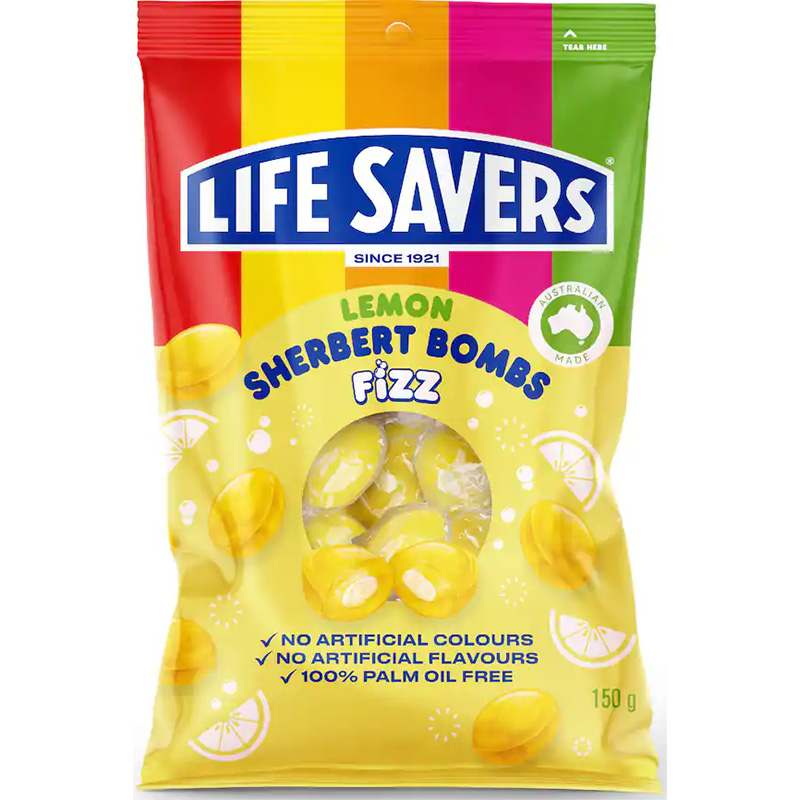 Lifesaver Lemon Sherbet Bombs 130g deliver a bold lemon hit with a fizzy sherbet surprise inside. A fun, fruity candy that’s perfect for lovers of sour sweets.