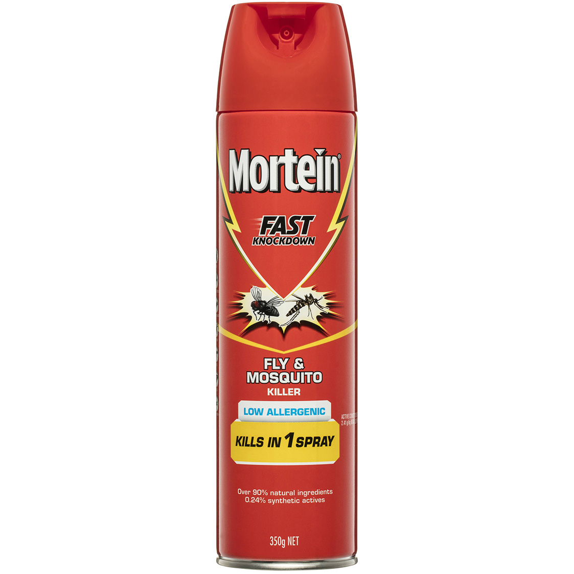 • Mortein Fly & Mosquito Spray 350gm (350g) is designed for swift and efficient fly control.