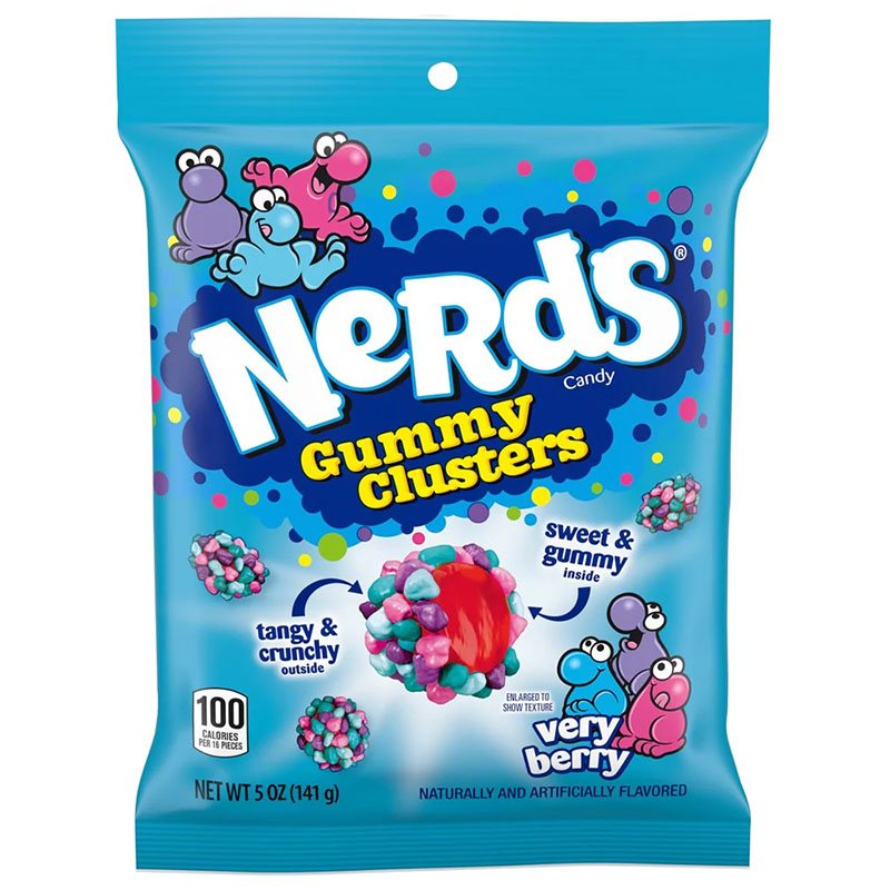 - Very Berry Nerds wholesale Gummy Clusters sharing pouch.