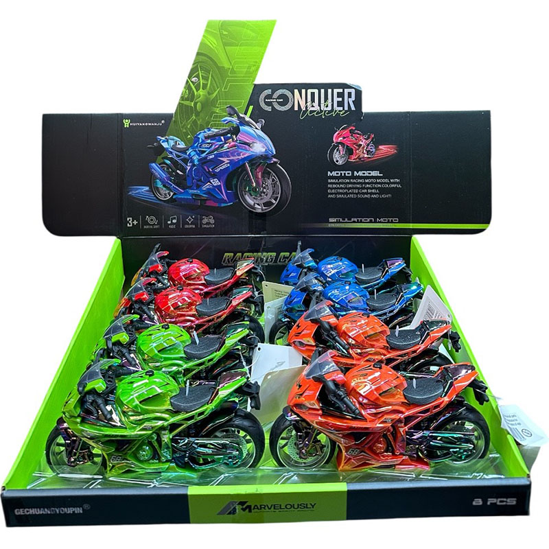 This 8-pack of racing bikes delivers speed, precision, and sleek design. Each bike features aerodynamic styling and durable wheels, ideal for racing games, display, or imaginative play.
