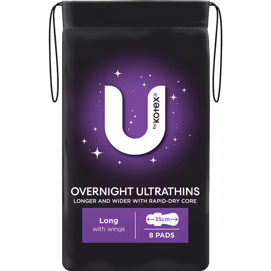 - 8-pack of U Ultrathin Pads Overnight Long, designed for maximum protection during the night.