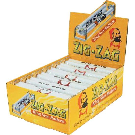 Insert king size rolling paper and tobacco, close the machine, and roll evenly to produce a neatly formed cigarette.